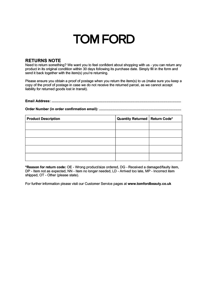 If for any reason you are not completely happy with your Tom Ford Beauty purchase, simply return the unused products and we will refund your account for the amount of the purchase.